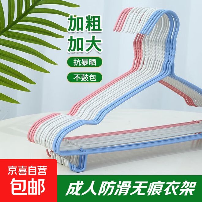衣架成人加粗防滑加厚学生宿舍无痕挂衣架家用衣服晾衣架撑子衣挂 升级带钩-38厘米 单色-10支