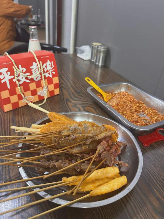 如果说酸甜麻辣的麻辣拌是抚顺美食的“魂”,那么炸串就是“根骨”。麻辣拌配炸串,再来一瓶宏宝莱汽水,基本上就是标配套餐。而炸串的精髓就在于数铁签小串。在烧烤遍地的东北,爱吃炸串的抚顺反而多了一丝“童心”。