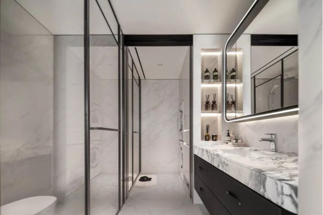 酒店式四分离公卫:实现独立洗漱台、卫生间、淋浴间、洗衣区互不打扰,将酒店化体验引入住宅,早高峰时期也能做到出入有序。